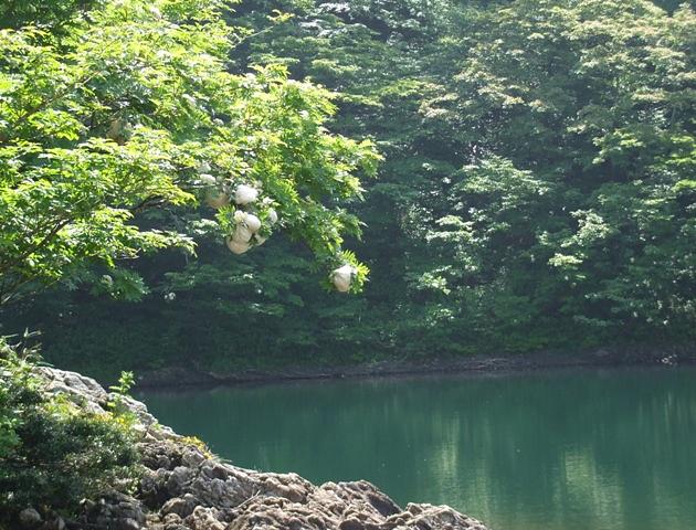 伝説の夜叉池に寄ってみた。雨乞いの話は、よくある話であるが、ここ夜叉ガ池には、見返りに大蛇のもとへと嫁にいく言い伝えがあり、今も神秘な雰囲気がかもし出している。モリアオガエルの白いたまごがぶら下がり、池の水の深緑が印象的だった。