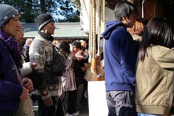 本殿にお参りするのに長蛇の列。参道から歩道まで行列ができていました。