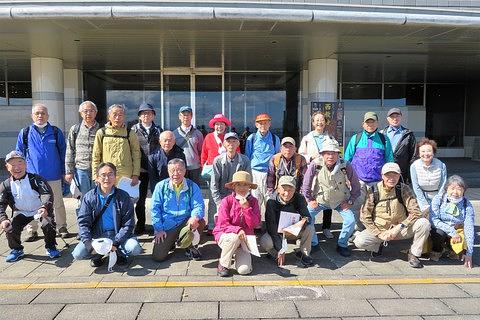 大津歴史博物館へ。 小休止。 これから行く大津宮のパンフレットを頂いて、集合写真。皆さんいい顔をされています。