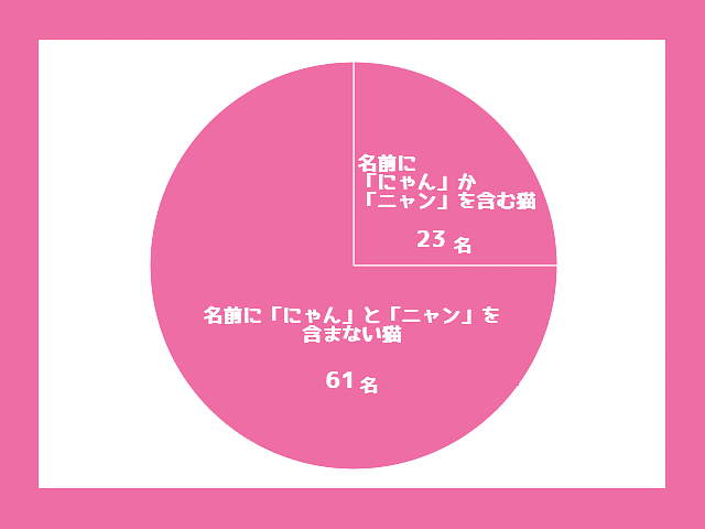 猫84名のうち、名前に「にゃん」か「ニャン」を含むキャラクターは23名います。
