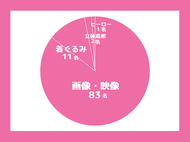 画像・映像の83名で、着ぐるみは11名、立体造形は2名、ヒーローは1名でした。着ぐるみとヒーローを合わせると13名(13%)です。「 どんな形態が多いのか ~ すべての着ぐるみキャラクターとご当地ヒーロー」より彦根全体の着ぐるみ・ヒーロー率は8.3%だったので、猫科の方がやや高くなっていそうです(母数が異なるので断定はできませんが)。