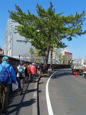 旧東海道に入り、工事中の道路のすぐ横にある江戸時代から生きている二本松を見ながら進みました。