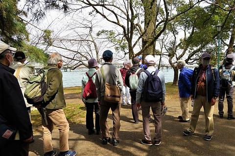 コース:JR石山駅⇒東海道を経由⇒膳所城勢多口総門跡⇒若宮八幡宮⇒本多神社⇒旧御殿浜海水浴場(小休憩)⇒篠津神社⇒膳所武家屋敷跡をたどって⇒膳所神社⇒膳所公園(昼食)⇒縁心寺⇒和田神社⇒響忍寺⇒砲台跡等⇒石坐神社⇒膳所城北総門跡⇒義仲寺⇒膳所駅前広場・芭蕉の碑⇒解散 行程7㎞弱