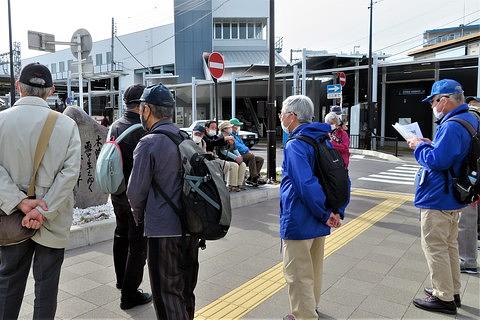 さらに膳所駅前広場で、最近できた芭蕉の碑について説明を受けた。少し疲れたメンバーもいた模様。