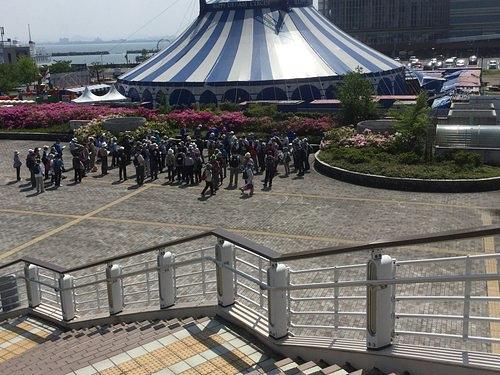新緑の葉を揺らしながら通り抜ける風が気持ち良い浜大津に、歴史街道探訪の参加者が100名近く集合しました。