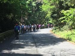 大津閘門、第一トンネル、トンネル出入り口に掛る扁額などの説明を聞きながら、小関峠道に入る。