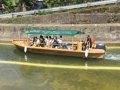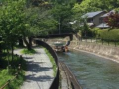 諸羽疏水公園の昼食時、びわ湖疏水船が蹴上へ向かって通り過ぎました。