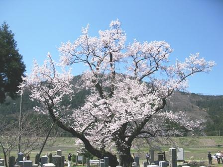 この彼岸桜は、海津のまちはずれの墓地の中に、高さ16メートル、幹の周囲6.4メートル樹齢300年以上といわれる巨桜が墓地を被さるように大幹を張っていた。作家・水上勉の小説『櫻守』では色んな桜を語っているが、主人公弥吉の終焉の地である「清水の桜」を選んで、小説を締めくくっている。水上勉が最も思い入れのある桜なのであろう。