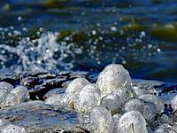 強風による高い波と氷点下の気温が作り出した幻想的な「しぶき氷」