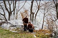 比叡山からの吹きおろしの風が、荒れ狂い、西風にあおられた波が、次から次へと岸辺に押し寄せていた。護岸壁や岩にぶち当たっては、飛沫が舞い上がっていた。氷点下での水滴が、草木を直撃し、たちまち氷結していった。