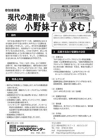 ・滋賀県内のNPO(法人格は問いません)の若手スタッフが対象です。