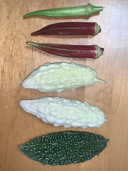 今年はちょっと変わった品種の白いゴーヤと赤いオクラが