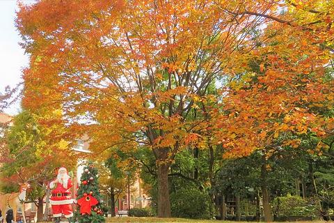 紅葉の中、クリスマスの準備もできていました。
