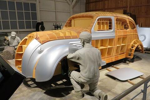次いで自動車関連で、開発の大変さを紹介、車体の木製モデルの紹介です。