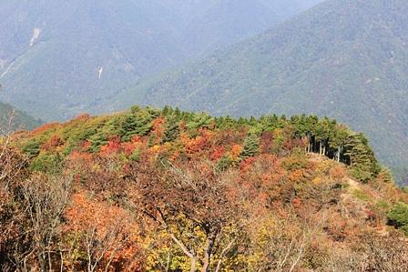 標高700mを越える尾根筋に出た時、一時、樹間から、展望が開けた。