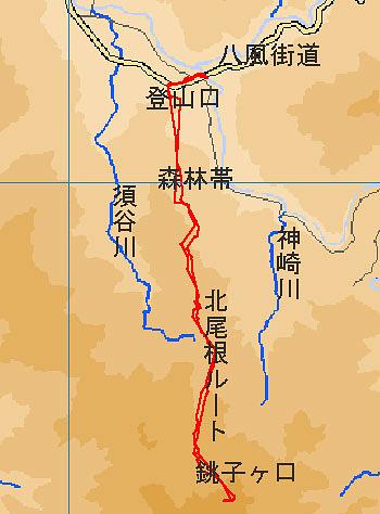 だが、国土地理院の二万五千分の一の地図では、1076.8mのピークに「銚子ヶ口」の表示もなく、辺りの杠葉尾(ゆずりお)集落・神崎川の地名だけだ。どうも、不親切であるが、このまま放置しておく方が、よいのかも知れない。