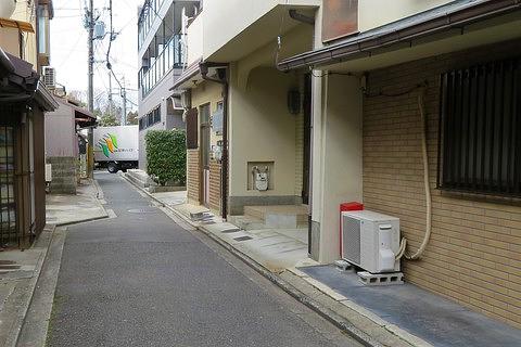 千本釈迦堂を西門から出て、細い路地を西へ。 大きなトラックが止まっていました。