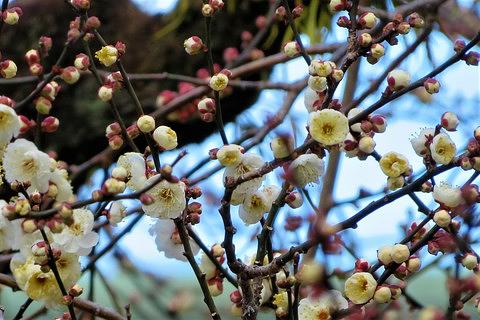 北野天満宮に戻って、梅の状態を観察しました。 まだまだ早いようですが、一部気の早い梅が花を付けていました。