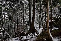 冷たい空気が肌を刺すその静けさの中で耳を澄ますと、雪が地面や木の葉にあたる微かな音が、無数の小さな声のように囁き合うのが聞こえてきた。この心地よい「不思議な音」は、木霊が私に何かを伝えようとしているかのように感じられた。枝先に積もる雪の重みに耐え、この地に根を張り続ける木霊は、私を見ていた。「誰もいない、と思うなかれ」と。その静穏の中で、私は自分自身と向き合い、心に広がる静かな安らぎを感じ取っていた。目には見えぬ山の精霊と交わる瞬間こそが、自然の醍醐味なのかもしれない。