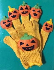 ペープサートの準備の前に手袋人形で