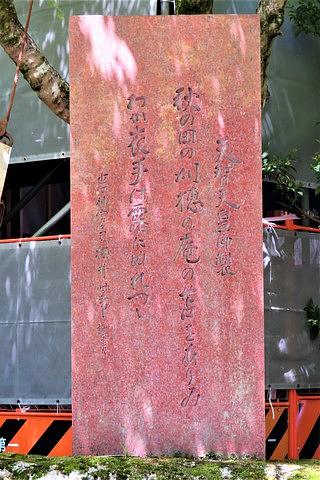 近江神宮を過ぎ、天智天皇の有名な歌碑