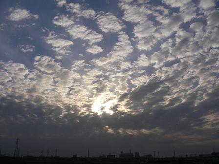 夕方の雲行きが、怪しい。雲の形のひとつひとつが、羊に見える”ひつじ雲”が発生。この高積雲は、低気圧が近づいている時に多い。
