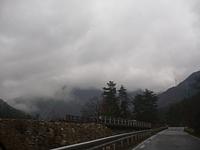 国道421号線沿いの永源寺ダム付近から見た山並みには、予想通り雲で覆われ、政所の近くの