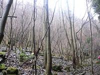 炭焼窯跡が散在する灌木の二次林を通り過ぎると、藤川谷を離れていった。 (拡大はクリック)