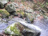 如来堂バス停近くの石段を登ると、谷が急になって対岸に渡り進むと、突然、姿が見えないが、野生の猿と思われる警戒する鳴き声がした。群が近くにいるようだ。我々が群の警戒距離を脱したのであろう、鳴き声がピタット止まった。