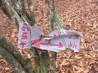 帰路は政所コースへ。楽しい稜線歩きが続いていたが、冷たい冷気が吹き出す植林帯へと踏み込んだ。衣掛山は、表示は無く、P870mの表示のみあった。昔、この衣掛山が日本コバの最高点と考えられていた箇所であった割に、見過ごしてしまう所だ。 稜線は広く、明るい雑木林の中を、目印に従って進み、やがて「政所(川西)」の標識から先は、いきなり道が悪くなった。 (拡大はクリック)