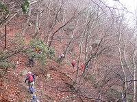 2回目の徒渉点は、谷が広くなっており、一息入れた。対岸にわたると、潅木は既に落葉し美しい幹だけの樹林帯がしばらく続いた。3回目徒渉点になった。
