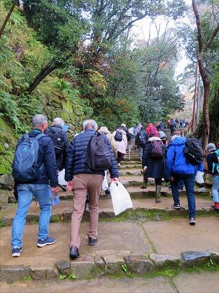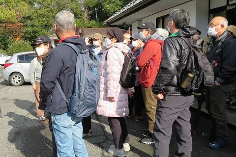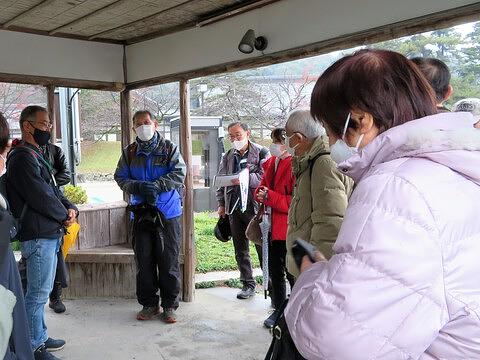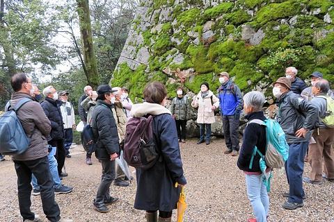小雨の中、集合場所二の丸駐車場前に予定時間に集まり、先生から当時の予定についての話があり、授業が始まりました。