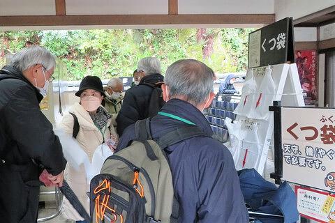 これから先建物の中は土足禁止なので、ここで土足入れの袋を頂きました。