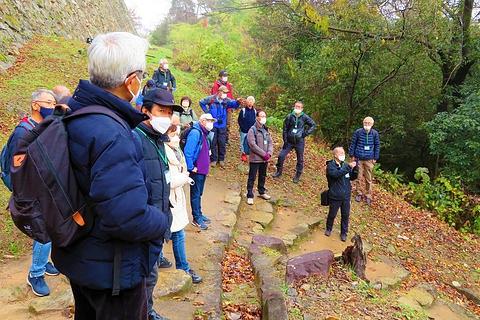 はっきりとわかる登り石垣の確認をしました。 起源は秀吉の朝鮮出兵の時に築城したお城にあるとのことでした。 彦根城築城にも朝鮮出兵に関係していた武将がいたとのこと。
