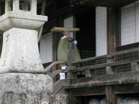 早朝の麓の町を歩いていると、道路脇に正座をして手を合わせ、頭をひれ伏している人にであった。どうも、阿闍梨がここ通っていく時間を事前に知っていたのであろう。阿闍梨は印をむすんで、頭や肩 を数珠でトントンと触れておられた。 「お加持」というものを初めて目にした。