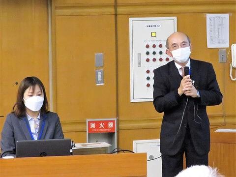 スライドの写真等を撮ってはいけないの事で、今回登壇された事務局長の河南先生と三品先生の写真です。