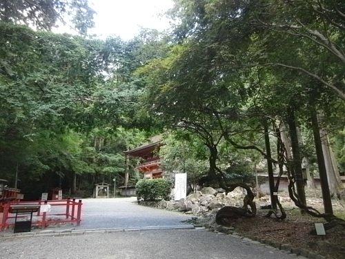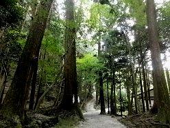 山裾にいくつもの堂宇が立ちならび、多くの巨木が残ります。