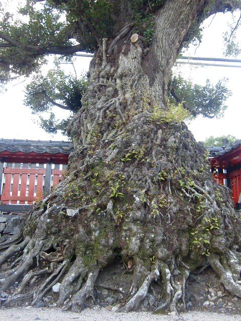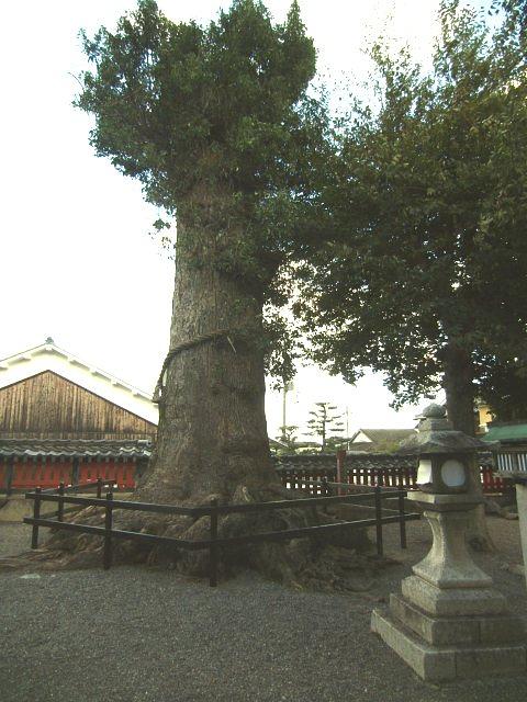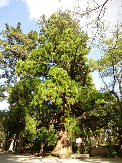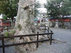 ひときわ目を引きます。幹の周囲はおよそ8m、.樹齢500年以上。