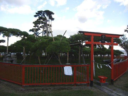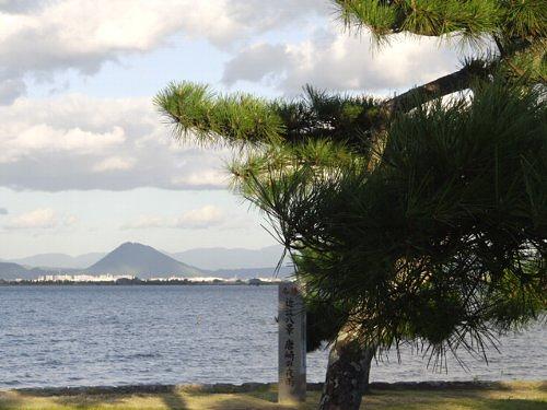 琵琶湖を見渡す岬に大きく四方へと枝を伸ばす松は、現在で三代目。