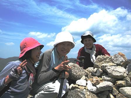 頂上で2人が休憩していた。このルートは、難コースの割に人気があるようで、途中、何人もの登山客に出会ったのが意外であった。