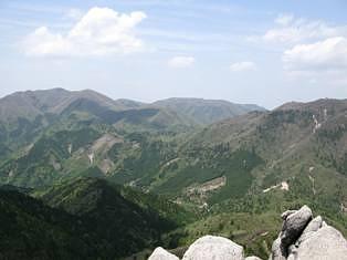 頂上からの眺めは、素晴らしい広がりを見せていた。武平峠の鈴鹿スカイライン越しに、重厚な雨乞岳、平らなイブネなど懐かしく眺められた。遠くには青々とした重畳たる山なみが続いていた。