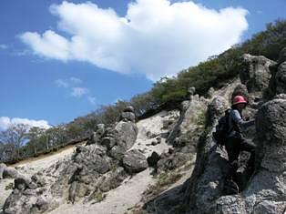 厳しいザレ場・鎖場・両側が深い谷の細い馬の背など危険箇所も多くスリル満点。その上、山野草が咲き乱れ、ツツジ科の赤ヤシオ・白ヤシオの満開、石楠花の咲きかけとなり、登山の醍醐味を満喫した1日となった。