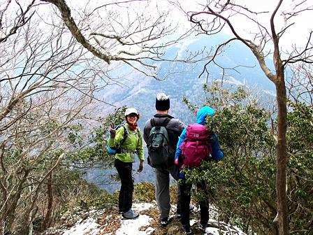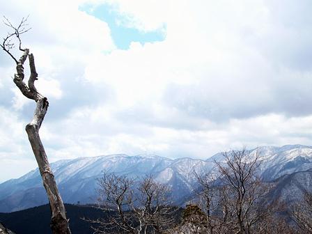 3月下旬になると温かくなってきていたが、この季節は三寒四温。雪がちらつき、高度が上がるにつれて、雪化粧に変身していった。鈴鹿山脈の藤原岳~御池岳が美しい。下りは展望岩コースを辿った。これ程身近に霊仙山が見えるとは驚きであった。