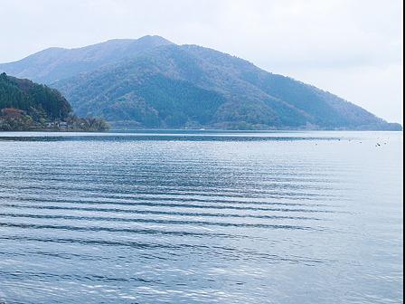 「葛篭尾崎」の半島から吹き下ろしてくる重い風が、絶えることなく起こり又起こっているのであろう。湖水面のどこからともなく波紋が起こると、生き物のようにこちらに向かってきた。