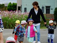 家族連れや団体一行の皆さんは、コスモスの風に揺れる花々の可憐な姿を眺めながら、咲き乱れる景色に心ゆくまで堪能していた。保母さんに連れられた幼い子供達もはしゃいでいた。