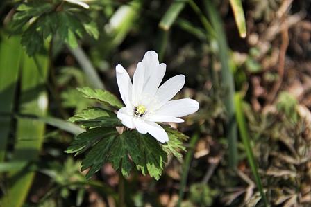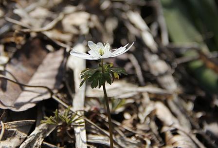 伊吹山の裾の沿いの大久保集落より、少し奥に足を延ばすと下板並集落があります。ここまでくると、人出もまばらになり、ゆったりと坂道を上っていきました。小川のある土手に次の出番は私と言わんばかりに「アズマイチゲ」が咲いていました。漢字で「東一華」と書くそうです。あずまとは東の国を指し、「一華」とは一本の茎に一輪の花が咲いていることらしい。