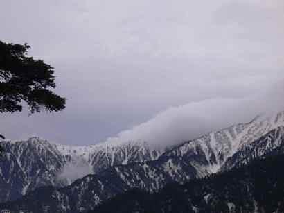 昔、私も何回も訪れたことがあっ た。しかし、5月の連休の北アルプスは、厳冬期より、むしろ雪 が深く、それなりの覚悟が必要である。 5月4日は、絶好の好天気に見舞われた。自動車の車窓から、ぼんやりと真っ白な北アルプスを眺めていた。常念岳の猛々しい姿は、何十年も経っていたがすぐに山容から分かった。