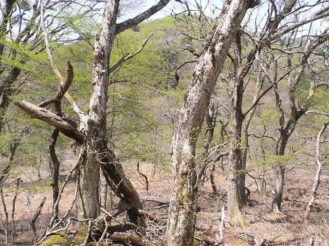 北に向かって緩やかに登っていくと2人組みの腕章を付けた監視員に出会った。栗の殻が多いことを話すと「ここは、動物たちが住んでいる」話してくれた。「八丁平は、大昔、湿原が形成され、アカマツ、ミズナラが生育し浮島が出来てきた」ことなども説明された。