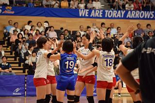 先日、草津市のYMITアリーナ(旧草津市民体育館)の建て替えオープン記念イベントで開催されたVリーグ女子の東レアローズ対トヨタ車体クインシーズの親善試合を観戦しました