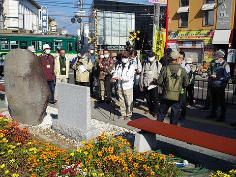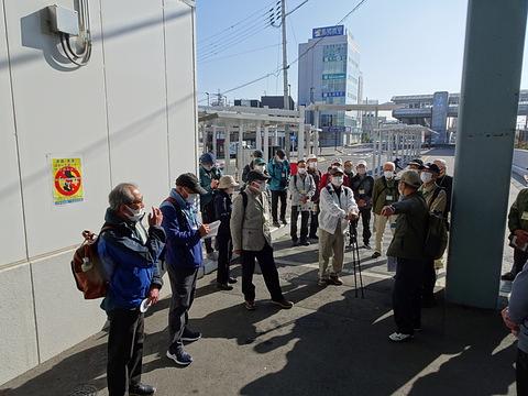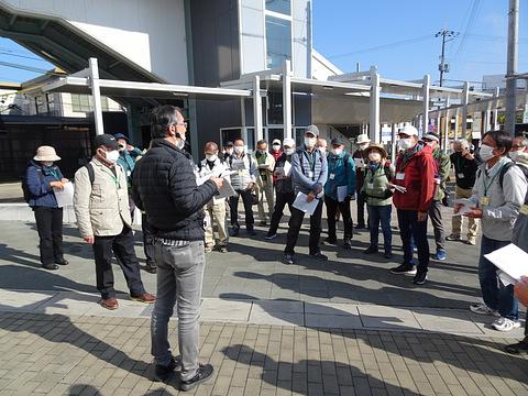 膳所駅一階で、交流部会長の谷口さん今回の散策についての全体説明がありました。